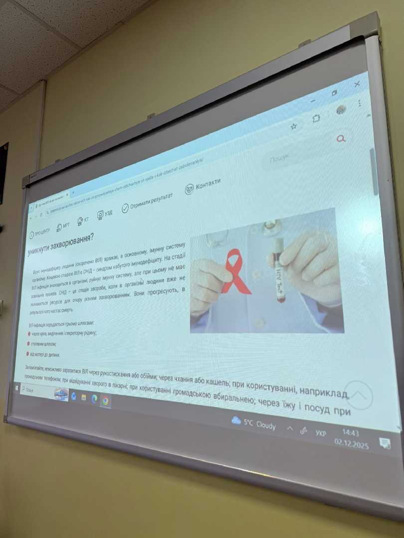 Учні переглянули пізнавальний відеоролик, поділилися тим, що вже знали про СНІД, а також перевірили свої знання, пройшовши підсумковий тест. Такі заняття сприяють підвищенню обізнаності та формують відповідальне ставлення до власного здоров’я.
