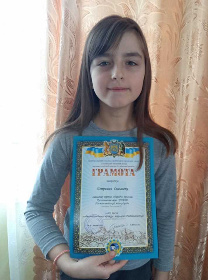 -3 місце Петришин Єлизавета, вихованка гуртка «Народні ремесла» за роботу «Шопка» (керівник Харитонцева О.);