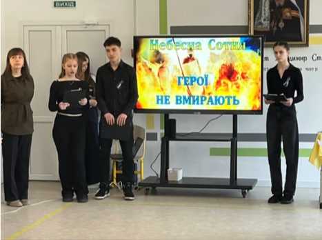 Цьогоріч пам’ятні заходи у нашому закладі були особливими. Учні 10-С класу разом із класним керівником Тетяною Шмагало підготували та провели урочисту лінійку-реквієм. Це був не просто виступ, а глибоке переосмислення подій Революції Гідності через призму сучасної молоді.