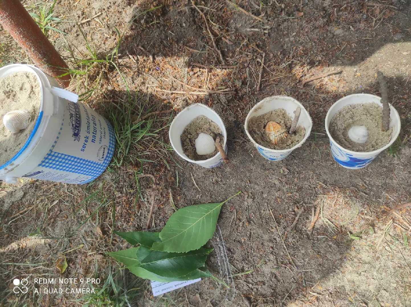 Знадобилося все - листя, пісок, каміння, мушлі, шишки, покидьковий матеріал, прутики , винахідливість та кмітливість.
