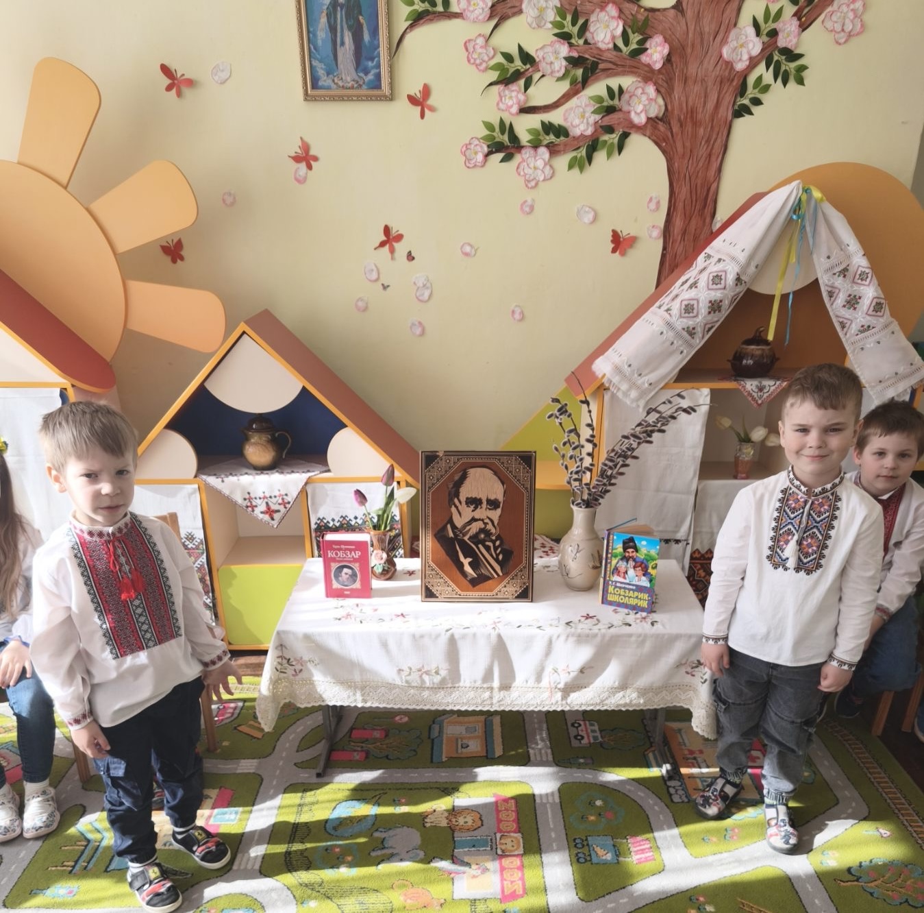 У старшій групі відбулося тематичне заняття з нагоди вшанування пам’яті Тараса Григоровича Шевченка. Діти слухали поезію Кобзаря та виконали творчу роботу.