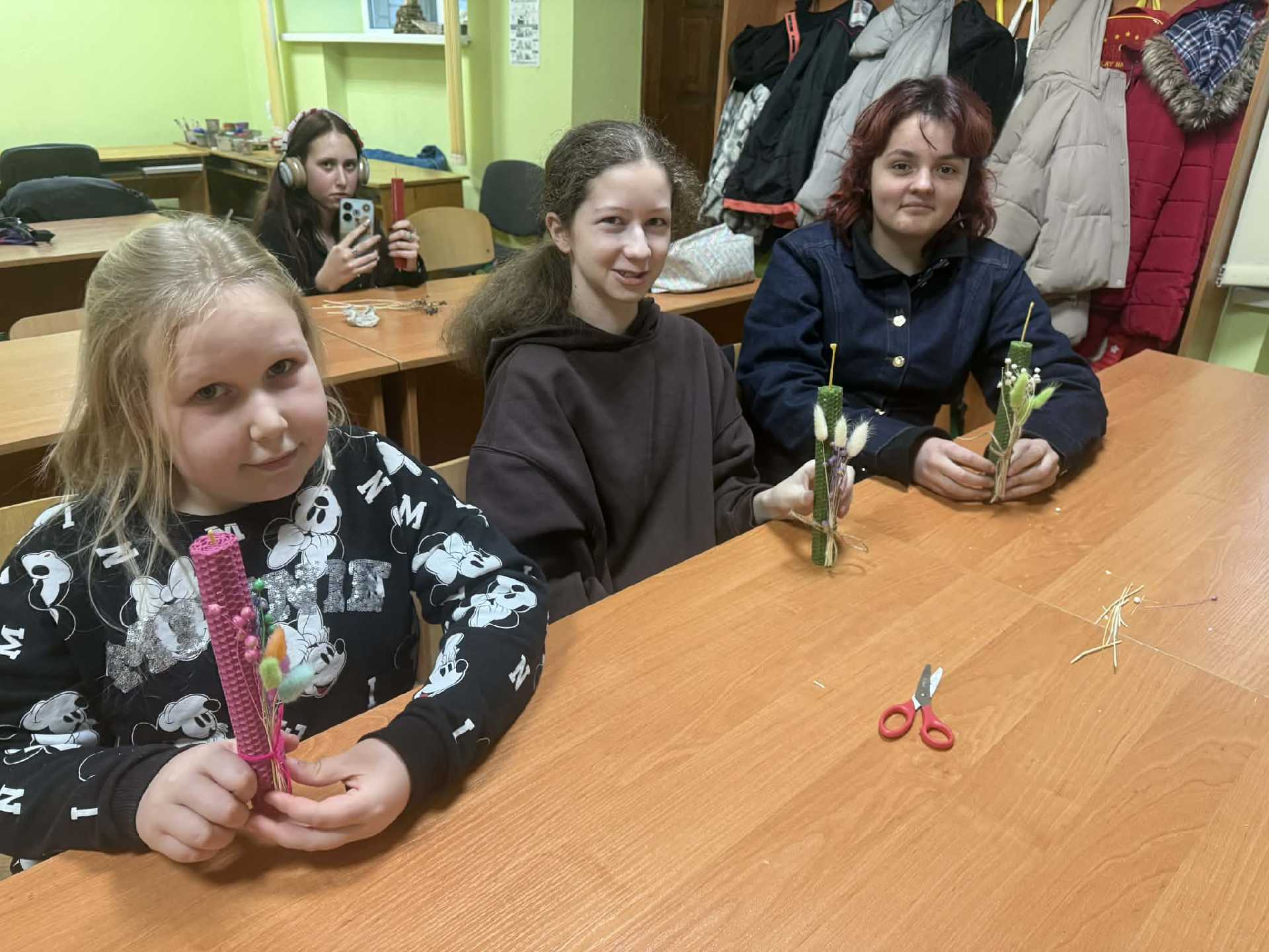 Наші учні гуртка "Палітра" (керівник гуртка Роксолана Шеремета ) напередодні продовжили святковий настрій зимових свят майстер-класом з виготовлення Стрітенської свічки!