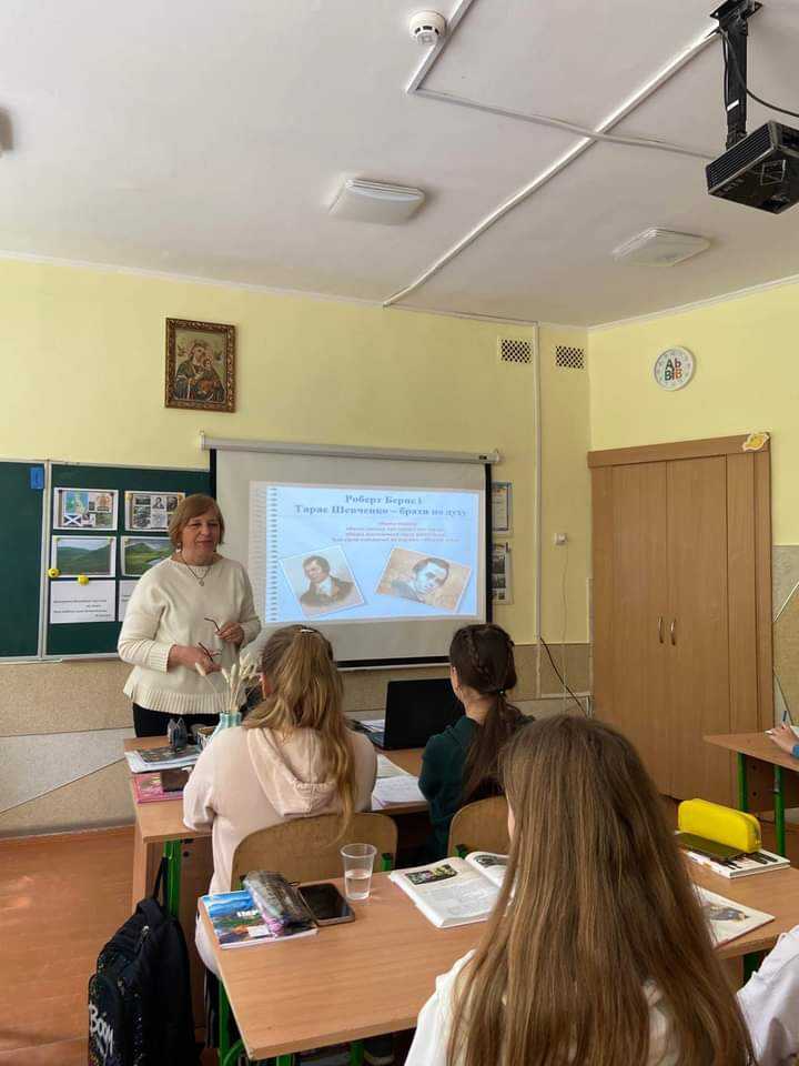 Творчість Р. Бернса високо цінували Т. Шевченко і Леся Українка. В обговоренні теми діти порівняли і знайшли дуже багато спільного в житті та творчості двох поетів: займають чільне місце в національних літературах.