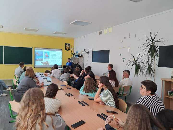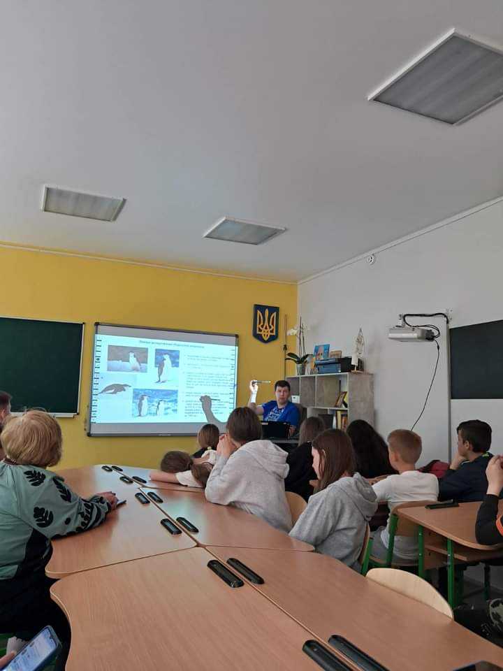 Тарас Богданович радо поділився з учнями й учителями біології та географії знаннями, інформацією про рослинний і тваринний світ Антарктиди, про організацію роботи на станції. Дослідник продемонстрував відео про полювання морського леопарда, харчування горбатих китів, відпочинок морських слонів і тюленів, мандрівку косаток, а також ознайомив із найпростішими організмами, які заселили крижаний континент та прилеглі острови. Також учні мали можливість отримати відповіді на питання про білу красуню Антарктиду.