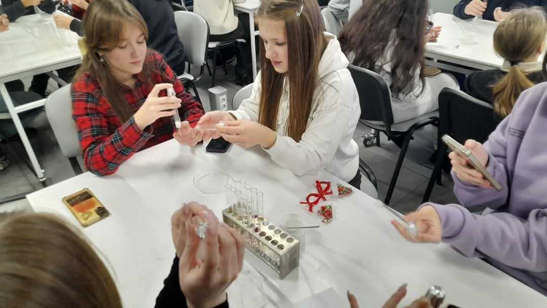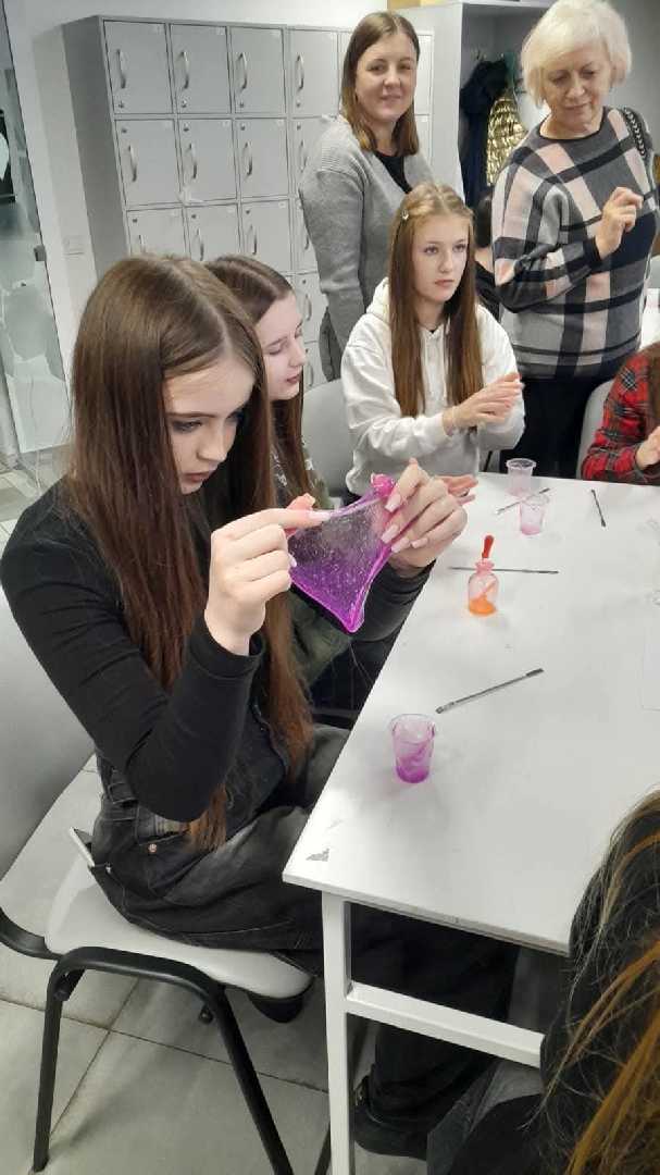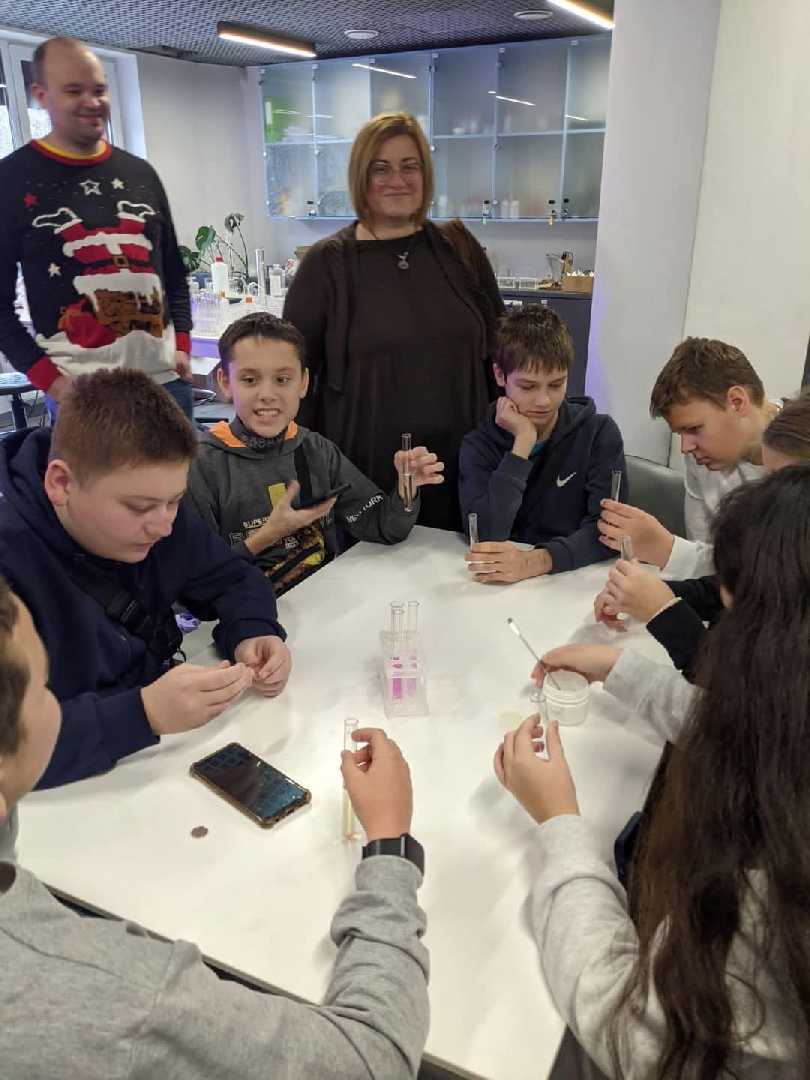 11 грудня учні 8-х класів Пустомитівського ліцею № 1 разом зі своїми вчителями хімії Оксаною Ілик, фізики Надією Мартинюк та Наталею Микляк, а також класним керівником Оксаною Пеньковою мали можливість побувати в Резиденції Наукового Миколая та поринути з командою ельфів-науковців у світ казки і науки, а саме у ST Lab. Перша молодіжна лабораторія. Тут на учнів чекали цікаві завдання з хімії, фізики, біології, 3D-моделювання та роботехніки. Вони провели дослід “Хімічна гірлянда”, під час якого побачили взаємодію різних хімічних сполук: кислот, основ та ін. Діти утворили “Гарячий лід” та фігури з нього, новорічні блискітки, ну і як не виготовити за такої нагоди трендову іграшку — “Слайм”. Побачили “Хімічний вулкан” та кольори хімічних вогнів. Дізнались про процес виготовлення та принцип дії хімічної грілки, яка зараз дуже потрібна нашим захисникам.