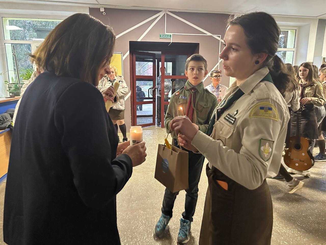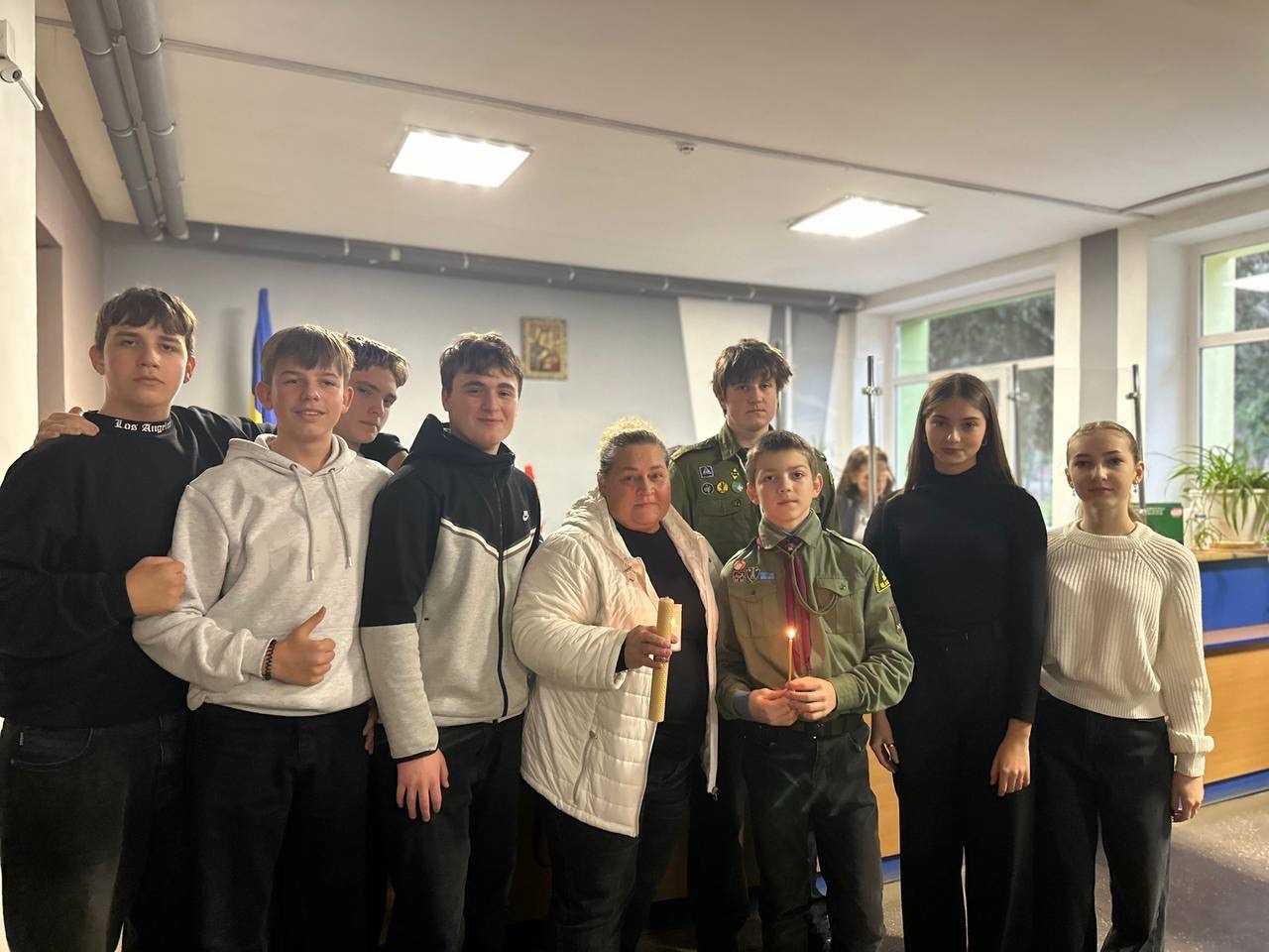 З такими словами пластуни станиці Пустомити урочисто передали Вифлеємський вогонь учнівській та педагогічній спільнотам Пустомитівського ліцею №1. Маємо надію, що цей символ миру, любові та добра, Вифлеємський вогонь, у час складних випробувань для України дарує нам усім світло переможної надії.