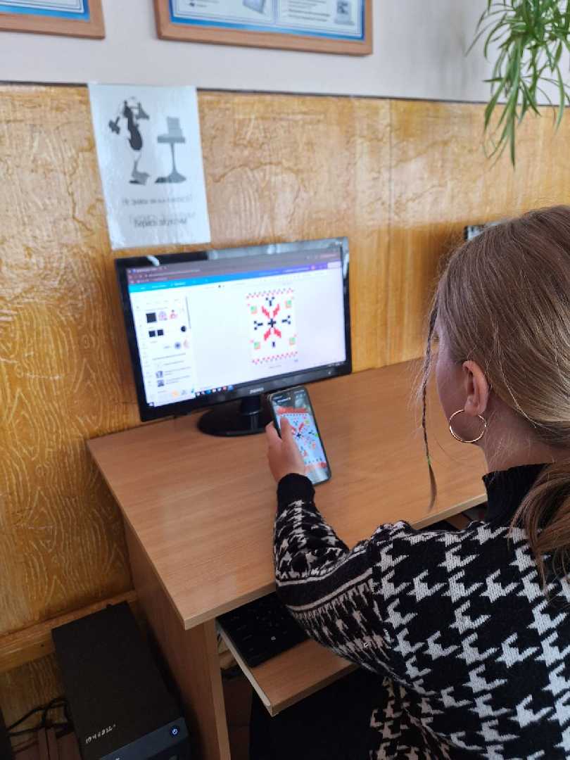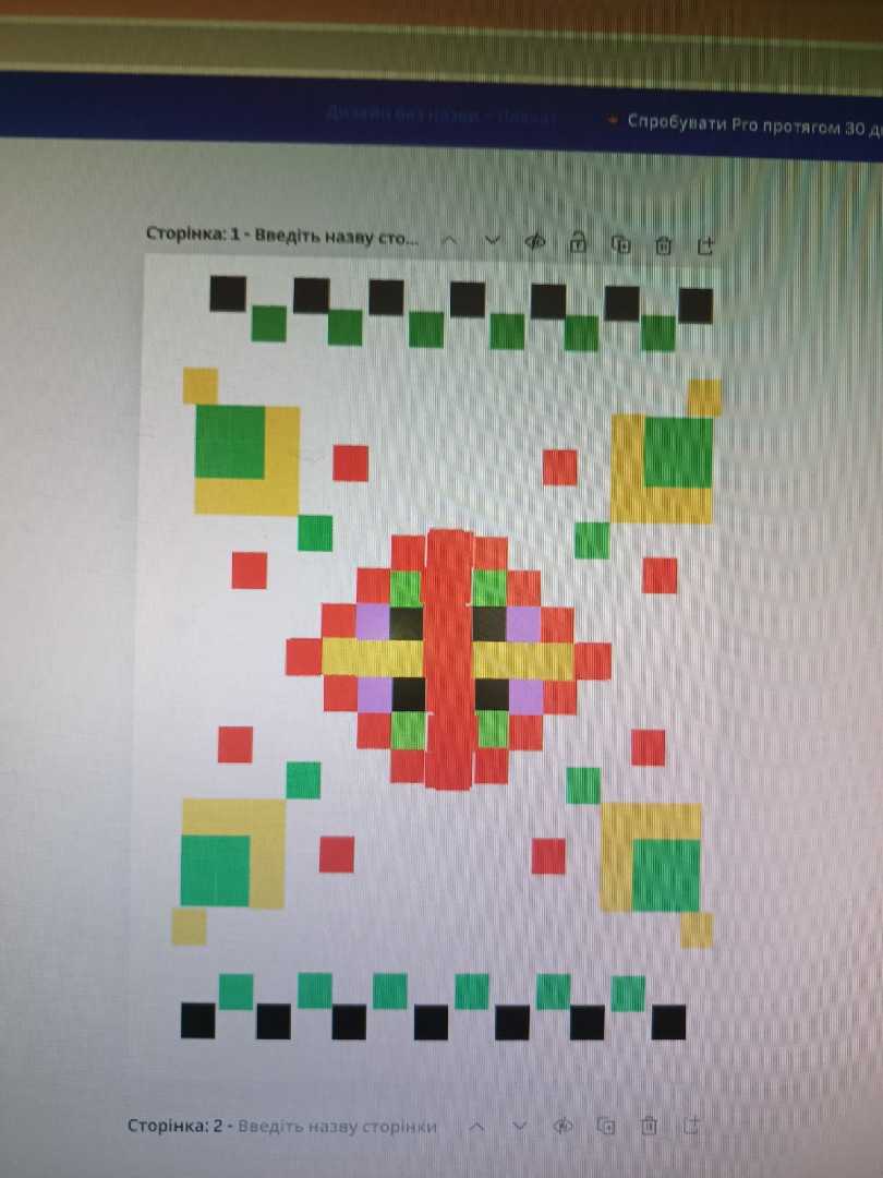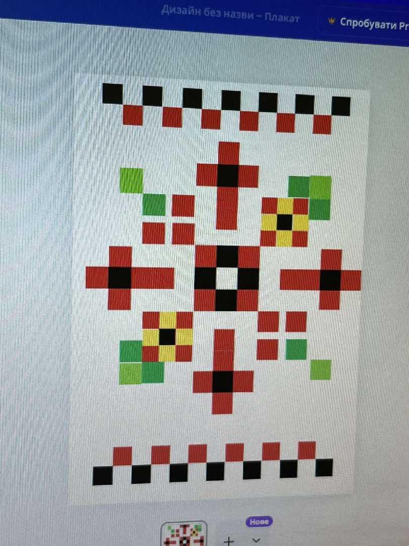 " Наша гордість - вишиванка". У День Вишиванки учні 5-В класу отримали завдання: розглянути типові символи і кольори вишиванок та створити рапорт орнаменту для вишитого рушничка у графічному редакторі Canva.