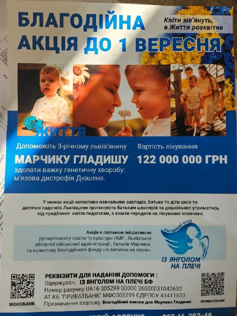 Щиро дякуємо від імені Марчика Гладиша за пожертву батькам, гостям, учням та вчителям Пустомитівського ліцею №1. Було зібрано кошти в сумі 5461 грн. Ваш внесок — це не просто допомога, а надія для дитини, яка бореться за життя. Завдяки усім вам стає можливим те, що здавалося недосяжним.