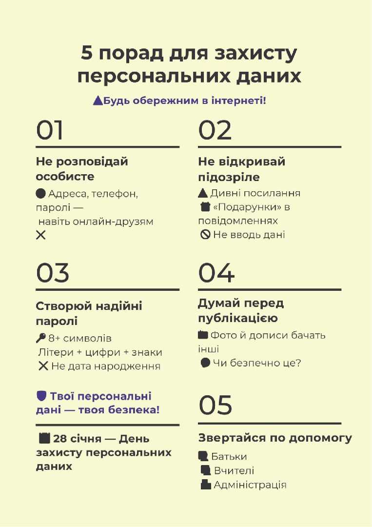 Сьогодні День захисту персональних даних. Його відзначають, щоб нагадати про важливість конфіденційності та безпеки особистої інформації в цифровому світі. Необхідно звертати увагу на відповідальне використання даних та дотримання прав людини на приватність. Захист персональних даних допомагає запобігти шахрайству, витокам інформації та зловживанням. Кожен користувач має усвідомлювати, як і кому він передає свої персональні дані.