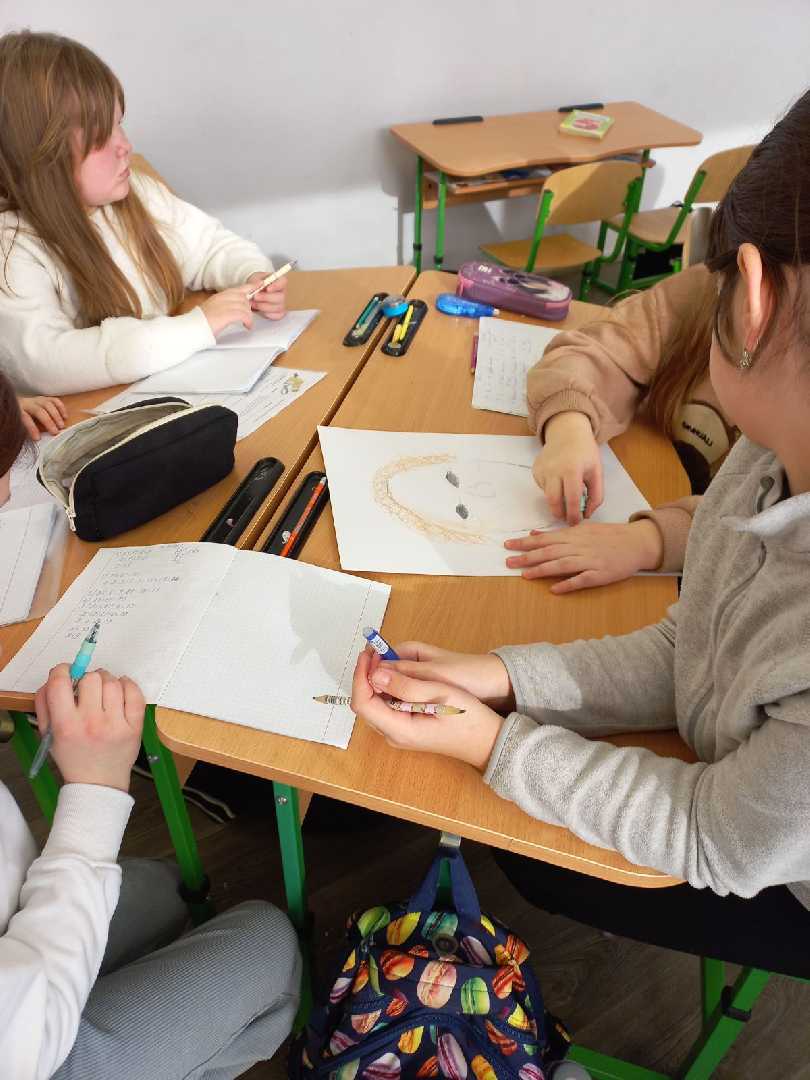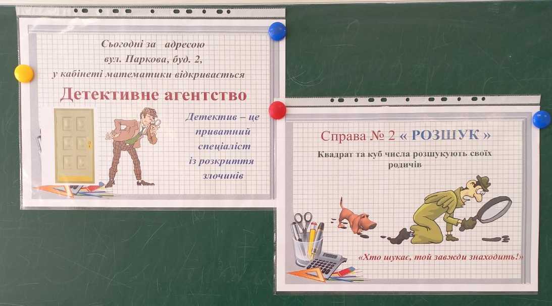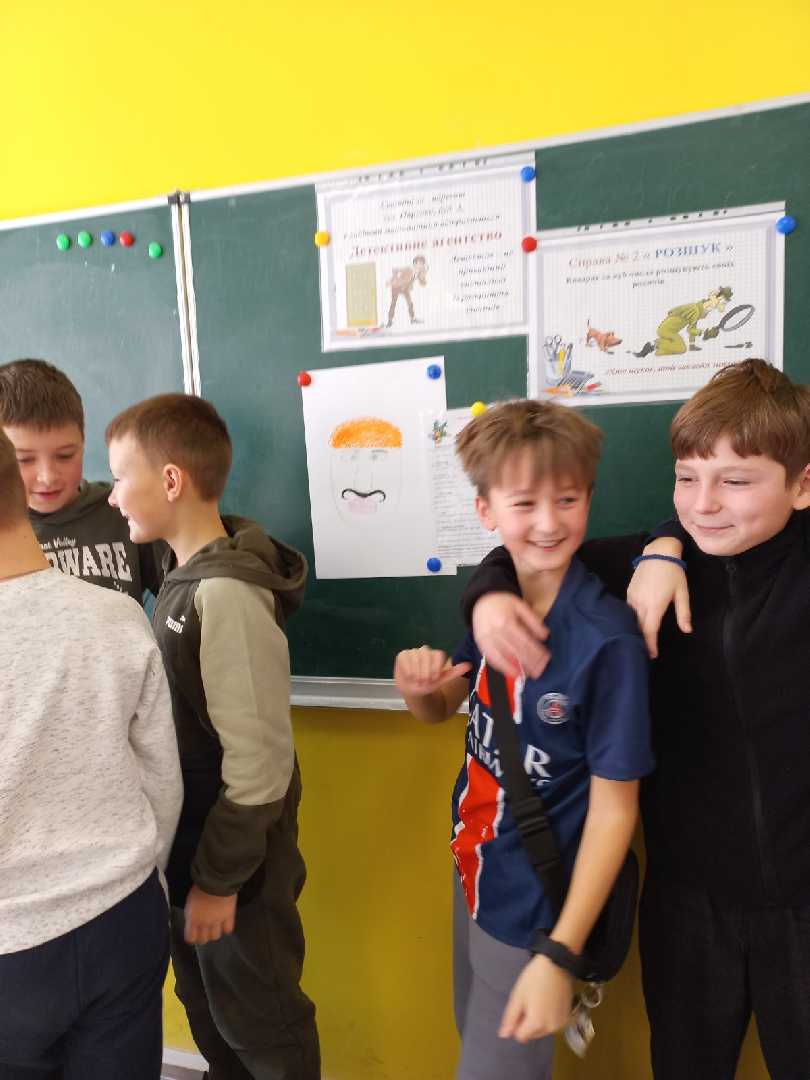 Сьогодні змагаються "Юні детективи" з 5А та 5Б класів (вчитель Іщенко І.І.), які використовуючи переставний, сполучний, розподільний закони метематики, знаходження невідомих компонентів при розв'язуванні рівнянь, вміння робити висновки, аналіз, математичну інтуіцію та ілюстрацію - одержують, як результат, портрет злочинця.
