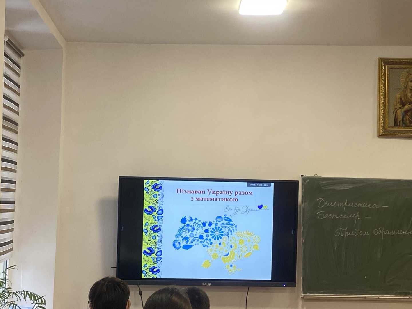 Урок з математики на тему: «Пізнаємо Україну разом з математикою» у 8Б та 8В класах (вчитель Микляк Н.В.). Під час уроку учні розв’язували приклади, задачі та логічні вправи на знаходження арифметичного кореня, відкриваючи нову інформацію про Україну. Такий міжпредметний підхід сприяє розвитку математичного мислення, уважності та вміння аналізувати, а також формує пізнавальний інтерес і позитивне ставлення до навчання. Урок поєднув навчальну, розвивальну та виховну мету, допомагаючи учням усвідомити практичну цінність математики й поглибити знання про рідну країну.