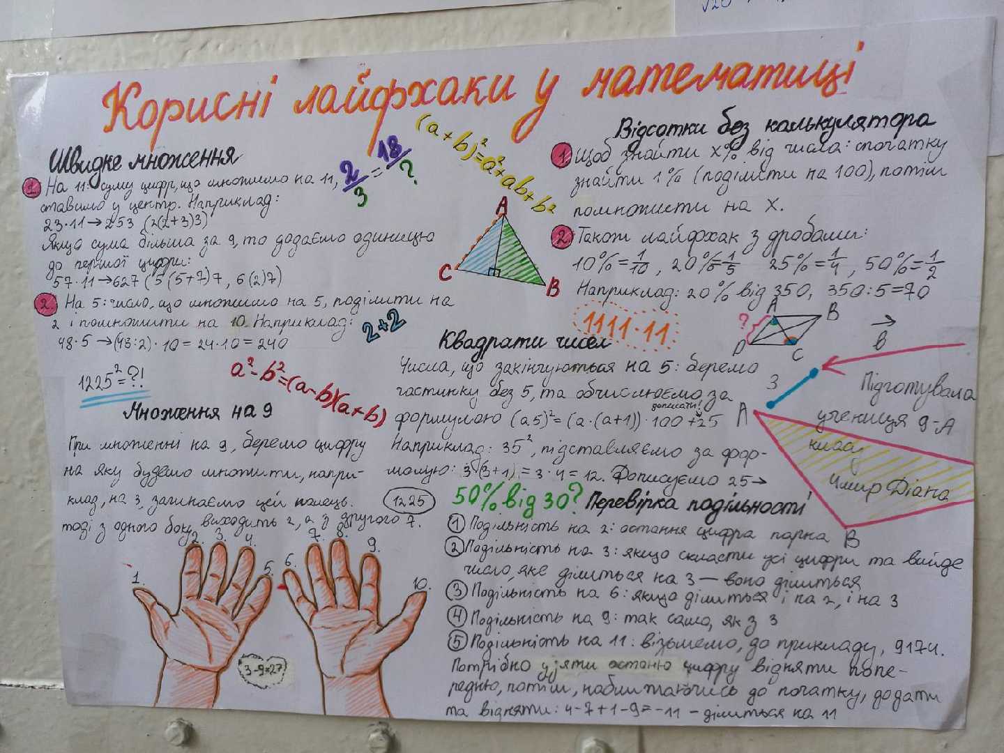 Цікавою, захоплючою і скрупульозною виявилась робота учнів 5 - 9 класів над відшуканням математичних лайфхаків, хитрощів та технік, які дійсно можуть стати корисними у нашому повсякденному житті та на уроках математики.
