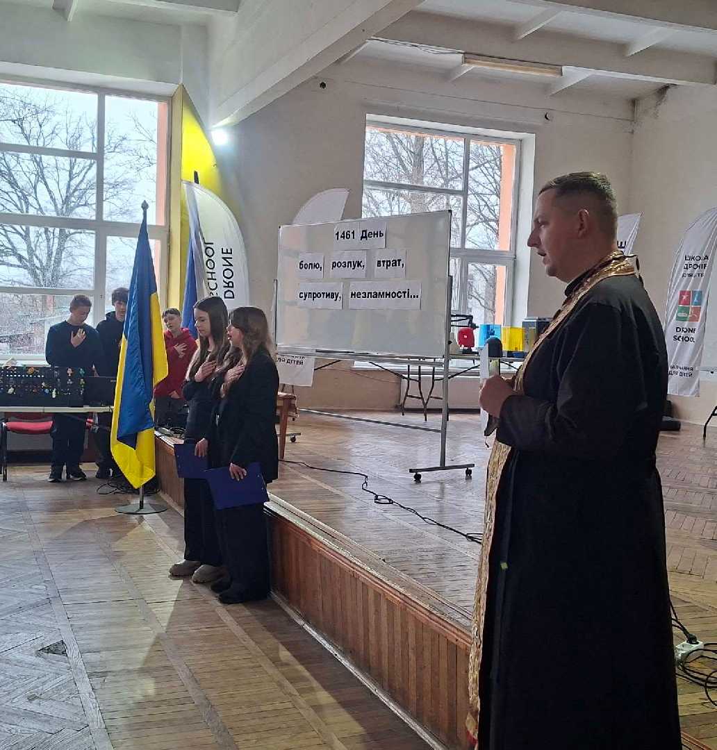 Під час спільної молитви до роковин повномасштабної війни в Україні учні просили миру, захисту для воїнів та спокою для всіх українських родин. Священник нагадав про важливість віри, єдності й підтримки одне одного у складні часи. Присутні вшанували пам’ять усіх загиблих хвилиною тиші.