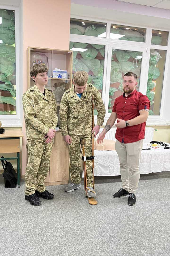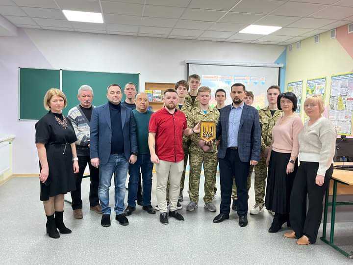 Володимир Говенко подарував для класу плакати з розповідями про історію військових формувань на теренах України від часів Русі до сьогодення, а також тризуб привезений з передової, мамою одного з учнів ліцею, підписаний бойовими побратимами з побажанням миру та Перемоги!