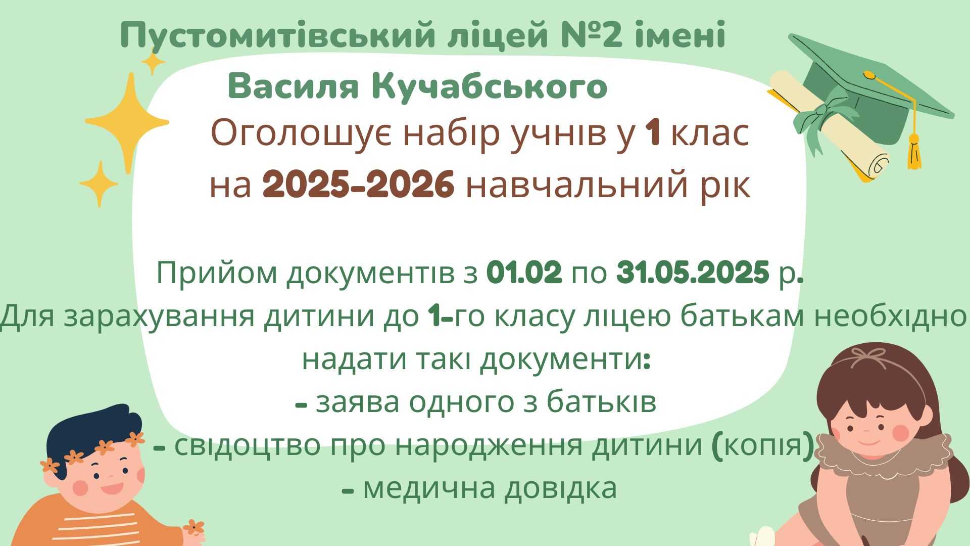 До уваги батьків майбутніх першокласників!