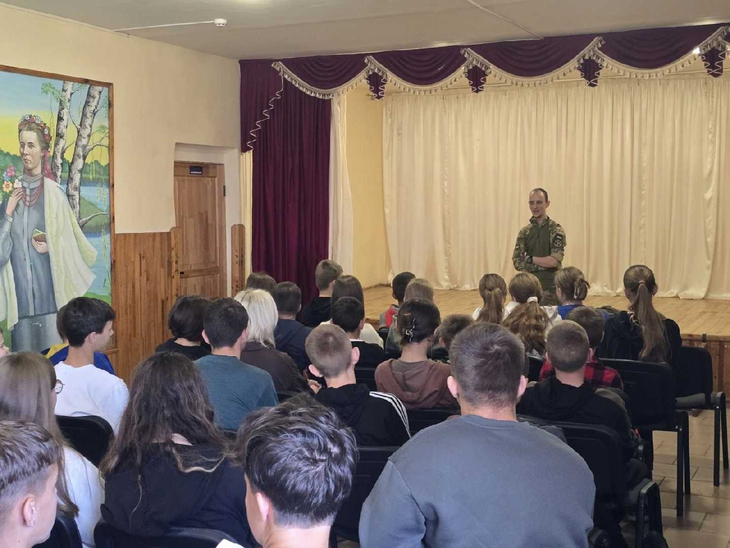 На завершення зустрічі учні подарували своєму наставнику та його побратимам листівки, виготовлені власноруч. Окрім цього від шкільної родини передали 30 000 гривень на потреби фронту, ліки, смаколики.