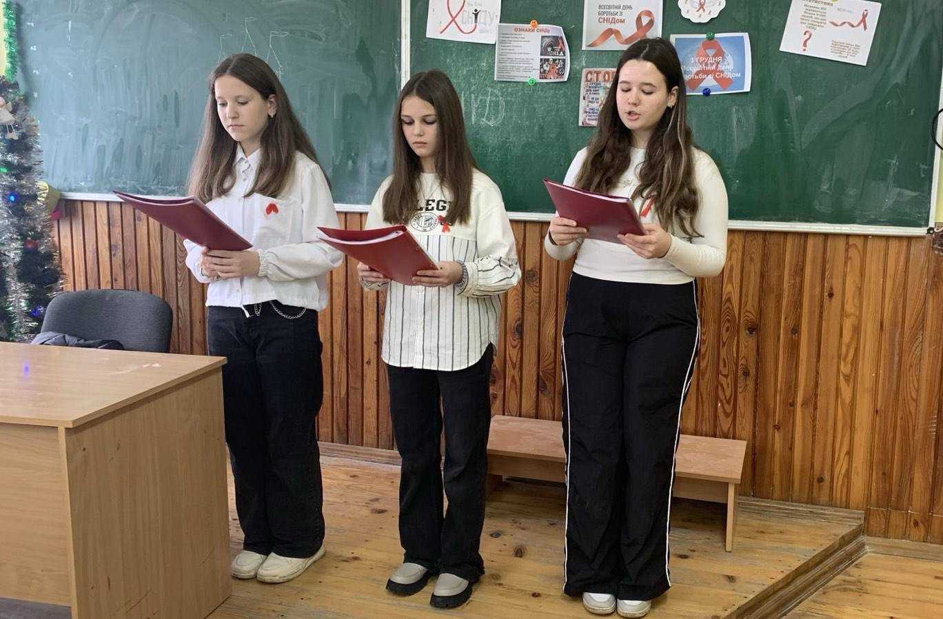 Учениця 10 класу Марія Глова розкрила старшокласникам історію виникнення і розвитку СНІДу, трагедію відомих людей, хворих на СНІД. А на завершення порекомендувала переглянути три фільми українською мовою , які закликають нас бути співчутливими до інших, толерантно ставитись до людей, хворих на СНІД, і закликають нас бути гуманними, особливо коли поруч є такі люди.