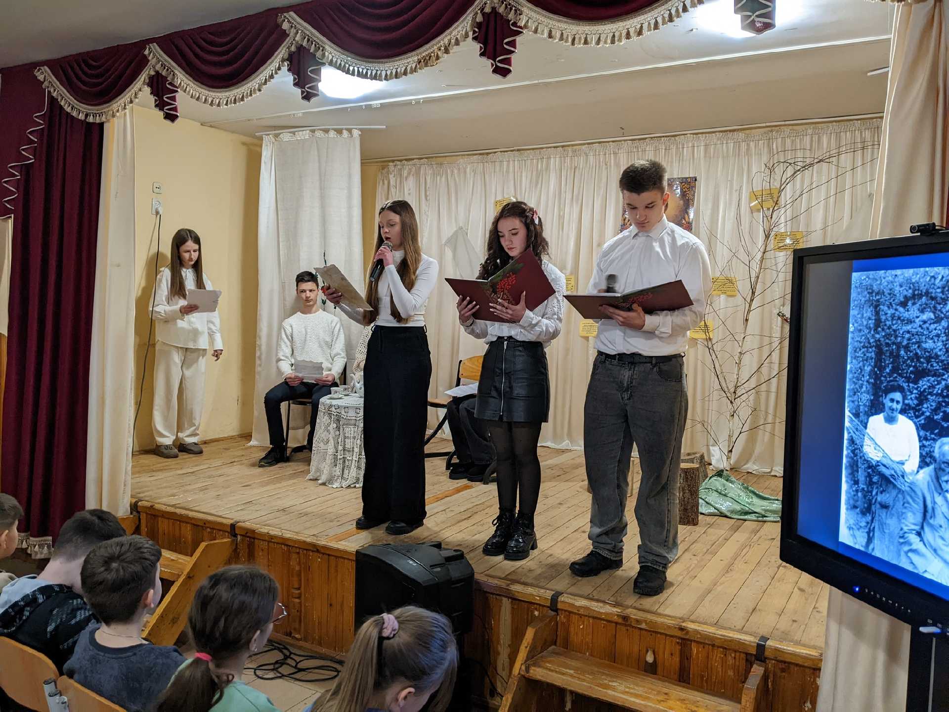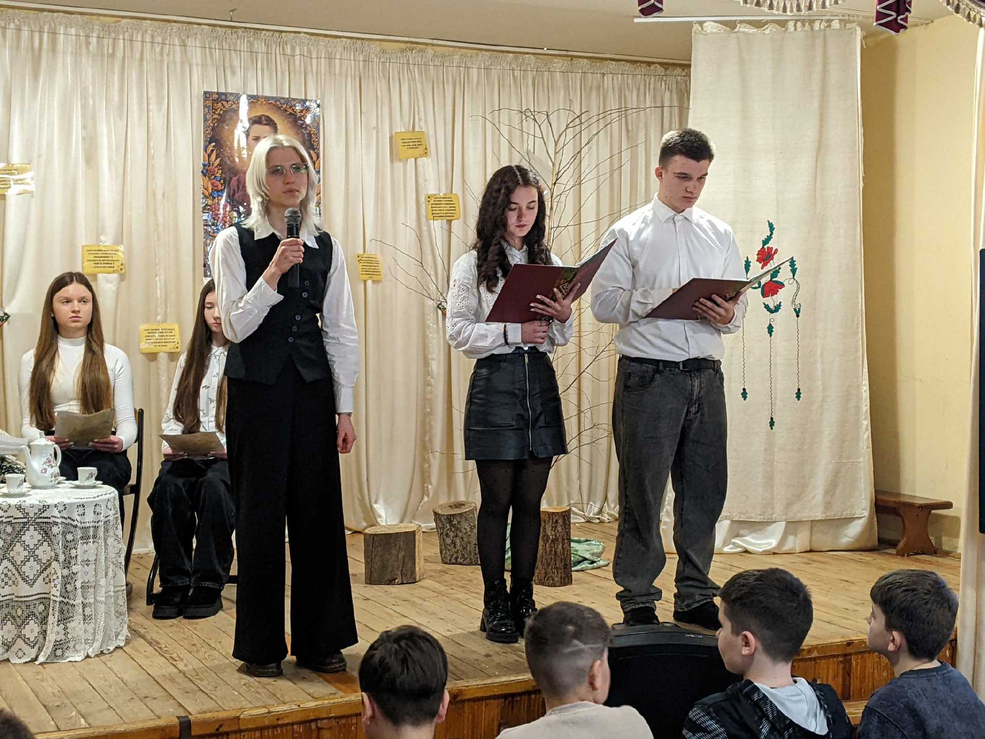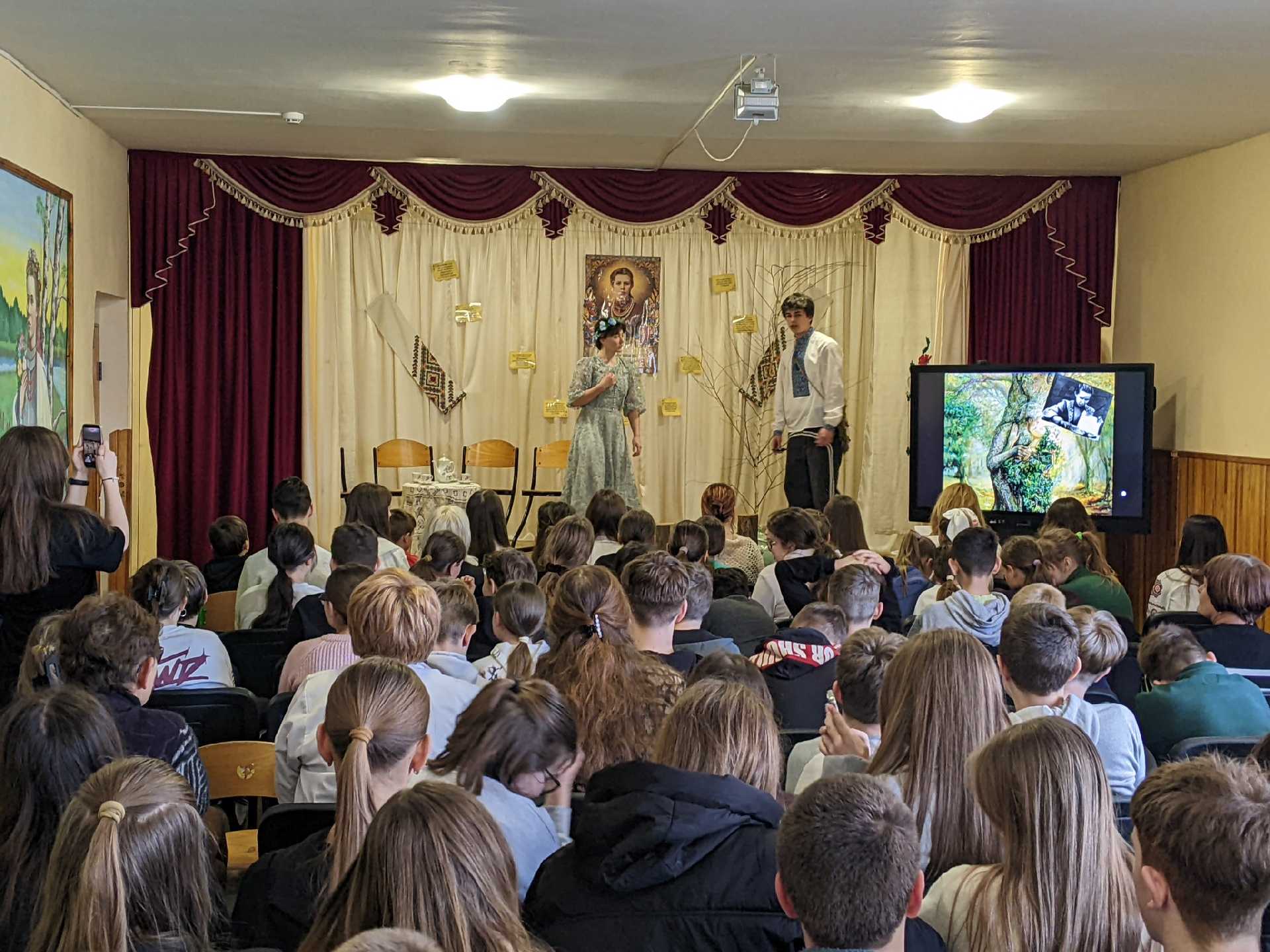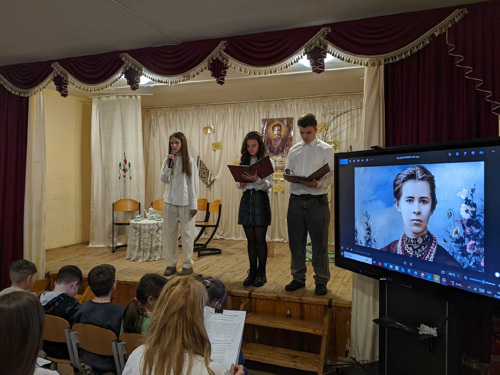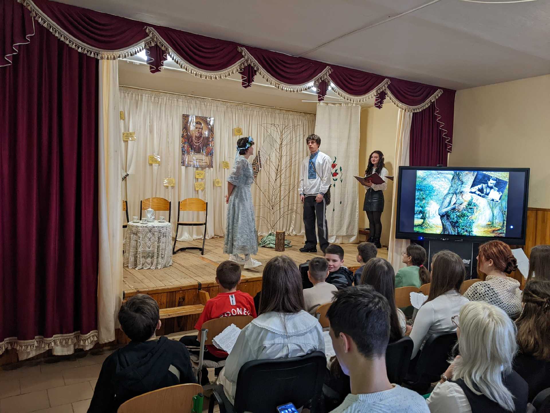 З цієї нагоди учні 11 класу під керівництвом класного керівника Журавльової Марії Василівни підготували театралізований захід-елегію " Я житиму сльозою серед співів..."