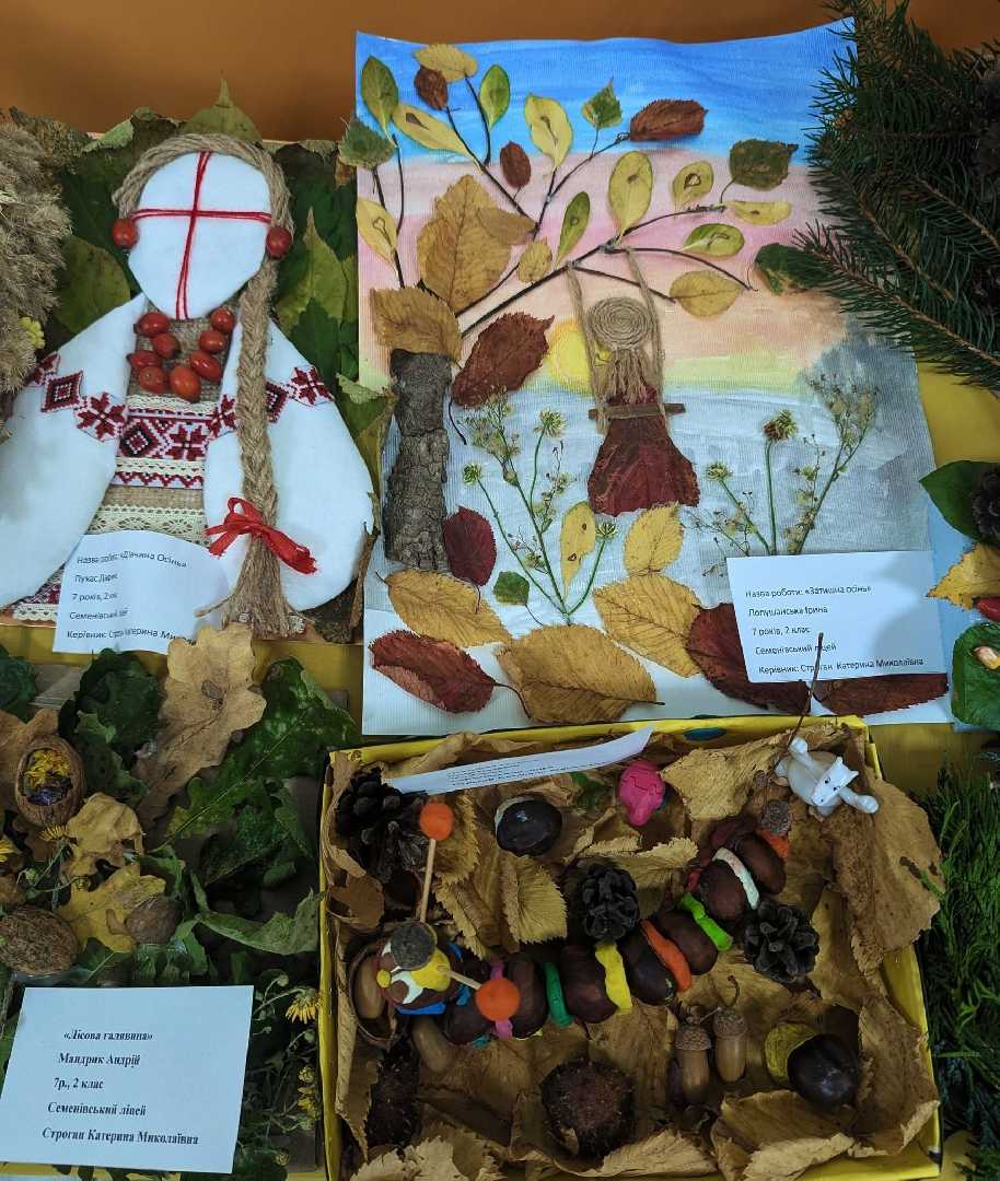 Осінні композиції наших учнів вражають різноманіттям барв, форм і текстур. Це ще один доказ того, що талант і натхнення здатні перетворити прості природні матеріали у справжні мистецькі витвори.
