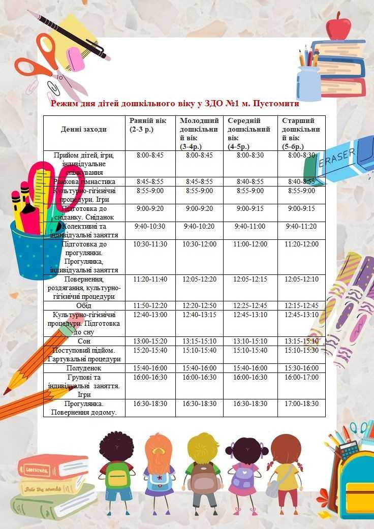 Режим дня ЗДО №1 м. Пустомити